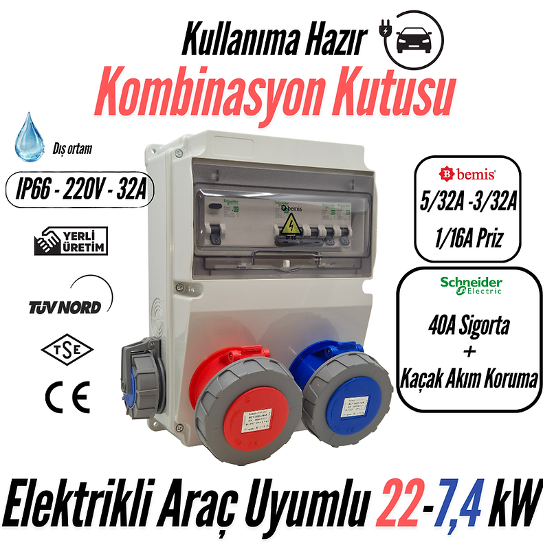 - Elektrikli araç şarj cihazlarında 40A sigorta ve kaçak akım koruması, hem araç hem de kullanıcı güvenliği için zorunlu hale gelmiştir. Bemis EV Pro Kombinasyon Kutusu, bu güvenliği hazır sistem olarak sunar.